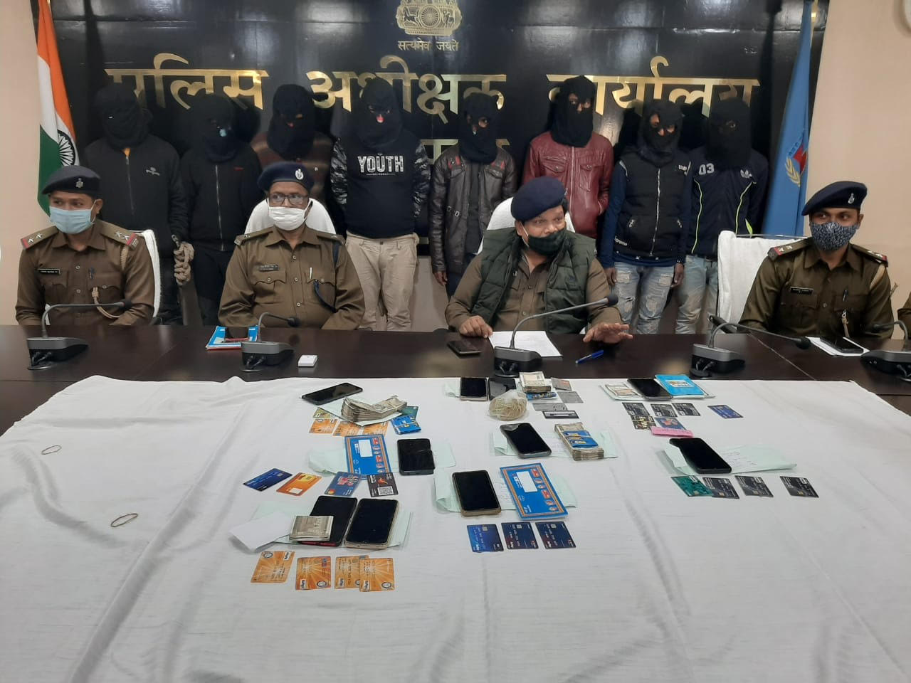 दुमका: दुमका के पुलिस अधीक्षक अंबर लकड़ा ने पत्रकारों को संबोधित करते हुए बताया कि गुप्त सूचना के आधार पर दुमका के विभिन्न स्थानों में छापेमारी कर आठ साईबर अपराधियों को गिरफतार किया गया है.उन्होंने बताया कि गुप्त सूचना के आधार पर पुलिस उपाधीक्षक विजय कुमार के नेतृत्व में छापेमारी हेतु एक टीम का गठन किया गया थाछापेमारी दल द्वारा विवेक कुमार मंडल,निजाम अंसारी, मुकेश मंडल, कौशल कुमार, जियाउल अंसारी, जियाउल अंसारी  ,सलाम अंसारी एवं नेमुल अंसारी को गिरफ्तार कर लिया गया है. साईबर अपराधी दुमका, जामताड़ा एवं गोड्डा जिले के रहने वाले हैं.गिरफ्तार अपराधियों के पास से 147300 रुपया नगद,34 फर्जी सिमकार्ड,दस मोबाइल फोन,29 एटीएम कार्ड,पांच बैंक पासबुक एवं एक पालिथीन रबड़ बरामद हुआ है जिसे जब्त कर लिया गया है.पुलिस अधीक्षक ने बताया कि अपराधकर्मी कश्मीर में काम करने जाने वाले मजदूरों के मेट से सम्पर्क कर उनके एटीएम कार्ड ऊंचे दामों पर खरीदते हैं और एटीएम कार्ड से संबंधित बैंक खाता में क्राईम का रुपया हस्तांतरित करते हैं.फिर उसी एटीएम कार्ड का इस्तेमाल साईबर क्राईम कर रुपए की निकासी में करते हैं.पुलिस कप्तान अंबर लकड़ा ने बताया कि इन अपराधियों का आसान निशाना आइसीआइसीआइ बैंक होता है क्योंकि इस बैंक के द्वारा रुपया निकासी पर ओटीपी नहीं मांगा जाता है एवं एटीएम से निकासी की सीमा एक लाख पचास हजार रुपया प्रतिदिन है.इनके पास से जब्त मोबाइल फोन में साईबर क्राईम कर रुपए के लेन-देन का स्क्रीनशॉट भी पाया गया है.उन्होंने बताया कि इनमें से दो अपराधी आसनसोल (पश्चिम बंगाल) एवं रांची में पूर्व में जेल भी जा चुके हैं.छापेमारी दल में पुलिस उपाधीक्षक विजय कुमार,परि०पु०अ०नि० श्यामल कुमार मंडल,राजेश कुमार, अरविंद कुमार राय, मिथुन किस्कू स०अ०नि०अशोक मिश्रा, दीपक कुमार, अमित कुमार,बबन प्रसाद सिंह एवं सशस्त्र बल के सदस्य शामिल थे.