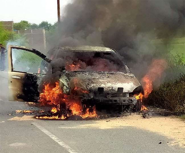 चलती इंडिका कार में लगी आग, कार में सवार थे 3 लोग
