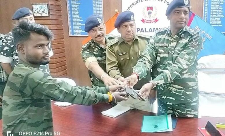 डालटनगंज: उग्रवादी संगठन जेजेएमपी के सबजोनज कमांडर अनिल भुइयां उर्फ प्रकाश जी उर्फ जय प्रकाश जी उर्फ ओमप्रकाश, पिता कपिल भुइयां ने मंगलवार को पलामू एसपी कार्यालय में आत्मसर्मपण कर दिया। एसपी कार्यालय में आयोजित एक सादे समारोह में अनिल भुइयां ने एक देशी कट्टा एवं दो 315 बोर की दो गोली के साथ सरेंडर किया।