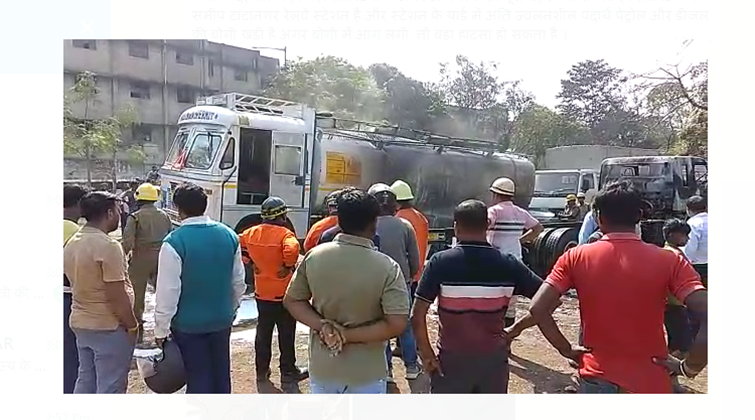 तेल डिपो के समीप खड़ी पेट्रोल टैंकर में लगी आग, आसपास खड़ी तीन गाड़ी को अपने चपेट में ले लिया
