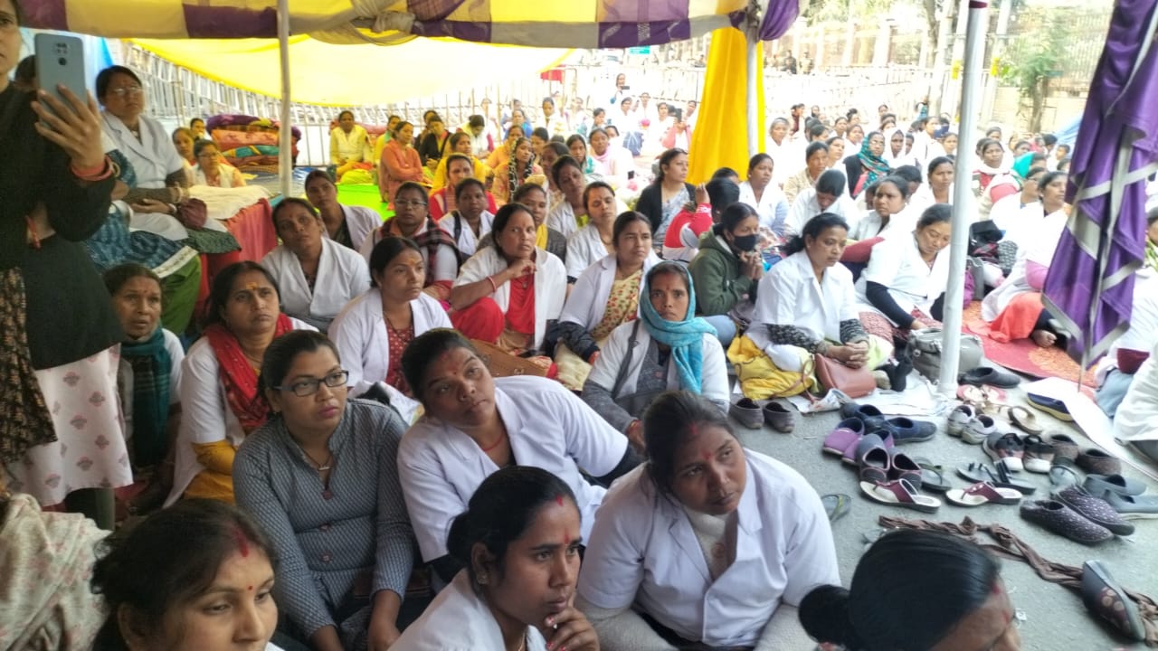 पारा स्वास्थ्य कर्मियों का आमरण अनशन 24वें दिन हुआ खत्म, पर हड़ताल जारी
