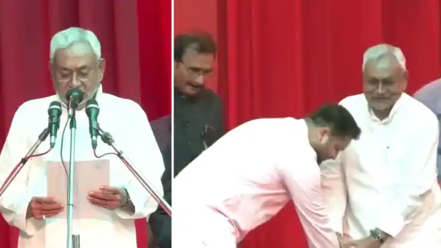 नीतीश कुमार ने 8वीं बार बिहार के मुख्यमंत्री के तौर पर शपथ ले ली है। राज्यपाल फागू चौहान ने बुधवार को उन्हें पद और गोपनीयता की शपथ दिलाई। नीतीश ने हिंदी में ईश्वर के नाम की शपथ ली। उनके तुरंत बाद तेजस्वी यादव ने डिप्टी CM पद की शपथ ली। शपथ लेते ही तेजस्वी ने मंच पर ही नीतीश कुमार के पैर छूकर आशीर्वाद लिया। इसके बाद नीतीश ने 2024 के लिए विपक्ष से एकजुट रहने की अपील की।