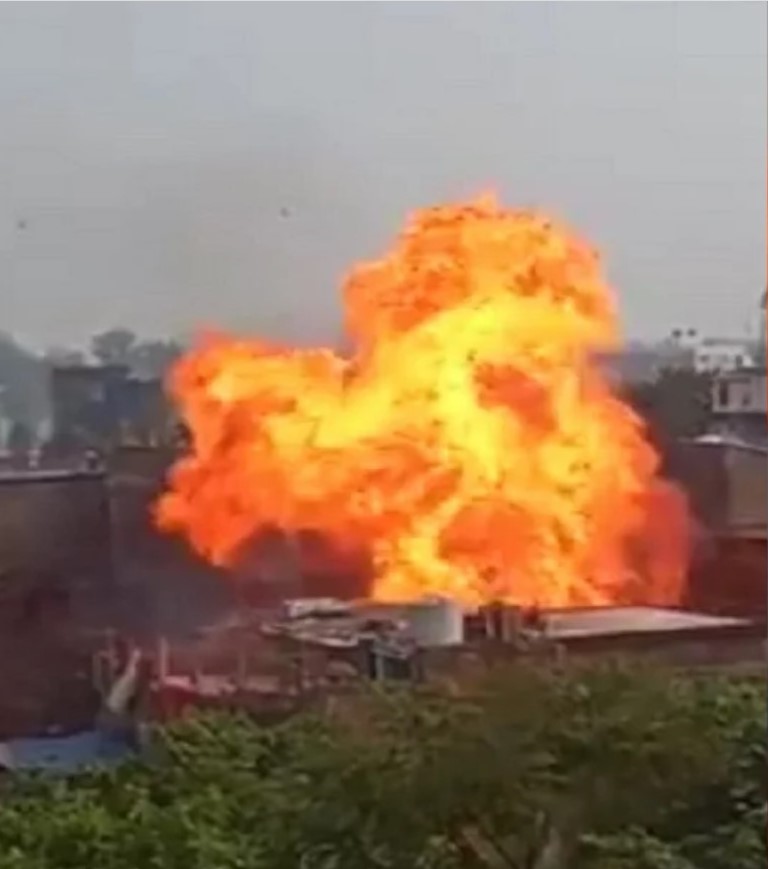 भागलपुर- नवगछिया के नोनिया पट्टी मोहल्ले में रसोई गैस सिलेंडर के अवैध कारोबारी रामचंद्र साह के घर शुक्रवार को दोपहर 12 से एक बजे के बीच कुल 14 रसोई गैस सिलेंडर के ब्लास्ट होने के बाद नवगछिया शहर में अफरा-तफरी का माहौल हो गया. नोनिया पट्टी के आसपास के लोगों ने अपने अपने घरों के सिलेंडरों को घरों से दूर फेंकने लगे तो बड़ी संख्या लोग अपने-अपने घरों से भाग कर बाहर चले आए. सिलेंडर ब्लास्ट की आवाज 2 किलोमीटर क्षेत्र के दायरे में सुनी जा रही थी तो दूसरी तरफ रामचंद्र साह के दो मंजिला मकान के छत से 20 फीट उपर तक आसमान में रह रह कर आग की लपटें उठ रही थी.