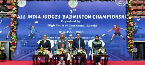 माननीय उच्च न्यायालय, झारखंड के तत्वावधान में आयोजित 2nd All India Judges Badminton Tournament 2026 का आज विधिवत शुभारंभ किया गया। मुख्य अतिथि माननीय मुख्य न्यायाधीश, झारखण्ड उच्च न्यायालय न्यायमूर्ति श्री तरलोक सिंह चौहान, न्यायमूर्ति श्री रोंगोन मुखोपाध्याय, न्यायमूर्ति श्रीमती अनुभा रावत चौधरी एवं भारतीय महिला हॉकी टीम की कप्तान सुश्री निक्की प्रधान द्वारा दीप प्रज्ज्वलित कर प्रतियोगिता का शुभारंभ किया गया।