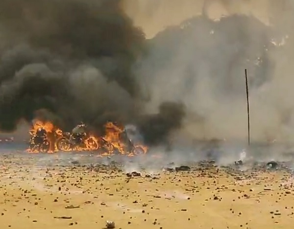 ग्रामीणों के मुताबिक पटाखे की एक दुकान में आग लगी और आग तेजी से फैल गई। मैदान के पास अनेक बाइक और टेंपो खड़े थे। आग ने कई बाइक और टेंपो को अपनी चपेट में ले लिया। इससे करीब 13 बाइक और दो टेंपो जल गए।