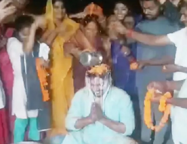 दूध से अभिषेक करने का गुंजन का ये वीडियो सोशल मीडिया पर तेजी से वायरल हो रहा है.