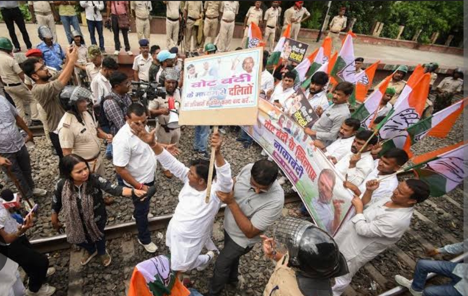 बिहार की राजधानी पटना में भी भारत बंद का असर देखने को मिला. कांग्रेस कार्यकर्ताओं ने सचिवालय हॉल्ट रेलवे स्टेशन पर पहुंचकर रेलवे ट्रैक को जाम कर दिया. यह प्रदर्शन खासकर राज्य विधानसभा चुनाव 2025 से पहले मतदाता सूची पुनरीक्षण (SIR) के विरोध में किया गया. इससे रेल संचालन पर असर पड़ा और कुछ ट्रेनें प्रभावित रहीं.