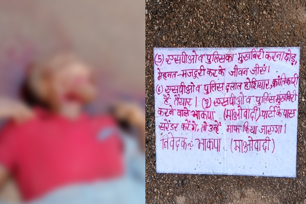 Chaibasa News: पश्चिमी सिंहभूम में नक्सलियों ने एक अधेड़ व्यक्ति की धारदार हथियार से गला रेतकर हत्या कर दिया है. घटना पश्चिमी सिंहभूम के गोईलकेरा थानाक्षेत्र के नक्सल प्रभावित गितिलपी गाँव के पास की है. मौके पर शव के पास भाकपा माओवादी नक्सली संगठन का पोस्टर पड़ा हुआ था जिसमें मृतक व्यक्ति पर पुलिस मुखबिरी का आरोप लगाया है.