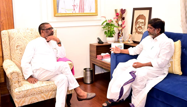 रांची। झारखंड के मुख्यमंत्री श्री हेमन्त सोरेन से आज तेलंगाना के उपमुख्यमंत्री श्री मल्लू भट्टी विक्रमार्क ने रांची स्थित मुख्यमंत्री आवासीय कार्यालय, कांके रोड में शिष्टाचार मुलाकात की। इस दौरान दोनों नेताओं के बीच राज्य में चल रही विकासात्मक योजनाओं, सामाजिक-आर्थिक मुद्दों और वर्तमान राजनीतिक परिदृश्यों पर विस्तृत चर्चा हुई।