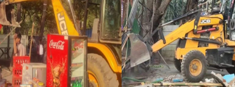 जेसीबी से ध्वस्त की गई धुर्वा मटन-चावल दुकान