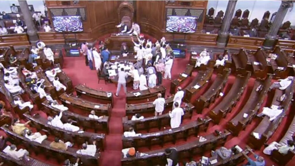 तृणमूल कांग्रेस के सदस्य शांतनु सेन को निलंबित किए जाने के विरोध में हंगामे के कारण राज्यसभा की बैठक शुक्रवार को 11 बजकर करीब 25 मिनट पर दोपहर 12 बजे तक के लिए स्थगित कर दी गई. हंगामे के कारण सदन में आज भी शून्यकाल नहीं हो पाया.