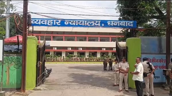 धनबाद: बहुचर्चित पूर्व डिप्टी मेयर नीरज सिंह हत्याकांड मामले में आज अदालत अपना फैसला सुनाएगी. इसको लेकर धनबाद न्यायालय परिसर और आसपास के क्षेत्रों में कड़ी सुरक्षा व्यवस्था की गई है. न्यायालय परिसर से लगभग एक किलोमीटर पहले ही बैरिकेडिंग लगा दी गई है और वाहनों का प्रवेश पूरी तरह से प्रतिबंधित कर दिया गया है. धनबाद पुलिस पूरी मुस्तैदी से कोर्ट परिसर में तैनात है जहां कुछ ही देर में अदालत का फैसला आने की संभावना है.