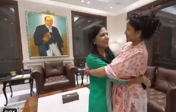 Sunita Kejriwal Kalpana Soren: दिल्ली के सीएम अरविन्द केजरीवाल की शराब घोटाला मामले में गिरफ्तारी के बाद रविवार को रामलीला मैदान में इंडी गठबंधन की महारैली आयोजित होने वाली है। इस रैली में विपक्षी दलों के तमाम शीर्ष नेता शामिल होकर भाजपा की केन्द्र सरकार की नीतियों और जांच एजेंसियों के कथित दुरुपयोग पर हुंकार भरेंगे। इसी रैली में शामिल होने के लिए झारखंड के मुख्यमंत्री चम्पाई सोरेन और कल्पना सोरेन दिल्ली पहुंच चुके हैं। दिल्ली पहुंची पूर्व मुख्यमंत्री हेमंत सोरेन की पत्नी ने दिल्ली के सीएम की पत्नी सुनीता केजरीवाल से उनके आवास पर मुलाकात की। दोनों की मुलाकात का एक वीडियो भी सामने आया है जिसमें कल्पना सोरेन सुनीता केजरीवाल को गले लगाती दिख रही हैं। दोनों नेताओं की यह पहली मुलाकात है। इस मुलाकात की जो जानकारी सामने आ रही है, उसके अनुसार दोनों ने कल की रैली और वर्तमान राजनीति को लेकर भी चर्चा की। बता दें कि विपक्षी दलों के नेताओं के साथ कल्पना सोरेन भी रविवार को महारैली को सम्बोधित करने वाली हैं