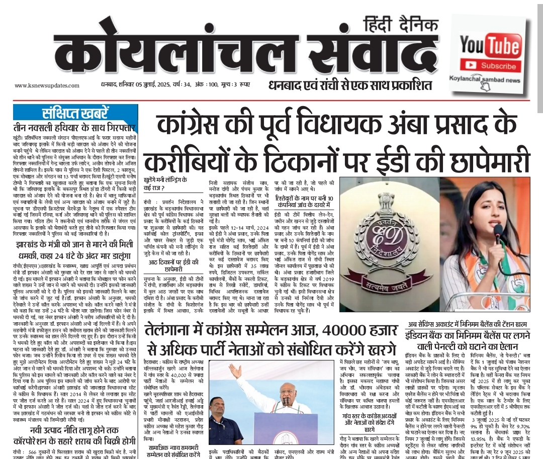 Home»E-Papper»KOYLANCHAL SAMVAD DHANBAD 05.07.2025 PDF