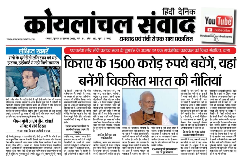 Home»E-Papper»KOYLANCHAL SAMVAD DHANBAD PDF 07-08-2025