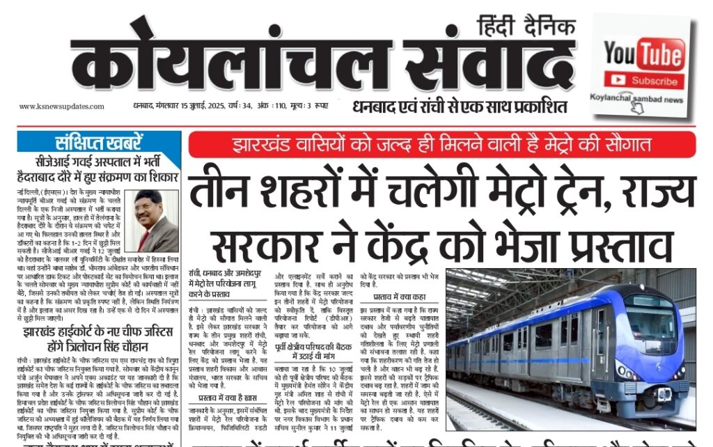 Share WhatsApp Facebook Twitter Copy Link Pinterest Email [pdf-embedder url=”https://koylanchalsamvad.in/wp-content/uploads/2025/07/KOYLANCHAL-SAMVAD-DHANBAD-PDF-15-07-2025.pdf” title=”KOYLANCHAL SAMVAD DHANBAD PDF 15-07-2025″] aaj ka jharkhand news DHANBAD NEWS jharkhand hindi news