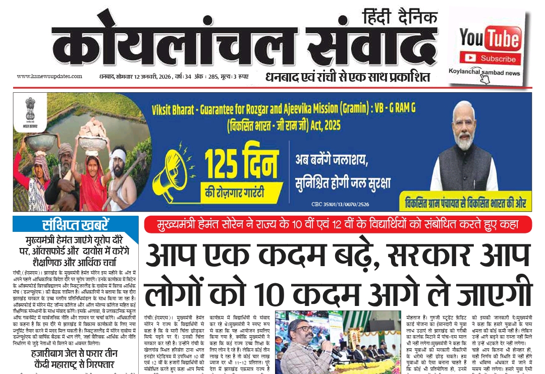 Koylanchal Samvad e-paper | 12th Jan | Dhanbad