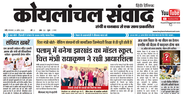 Home»E-Papper»Koylanchal Samvad e-paper | 14th April | Ranchi