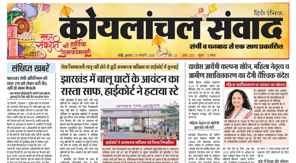 Koylanchal Samvad e-paper | 14th Jan | Ranchi