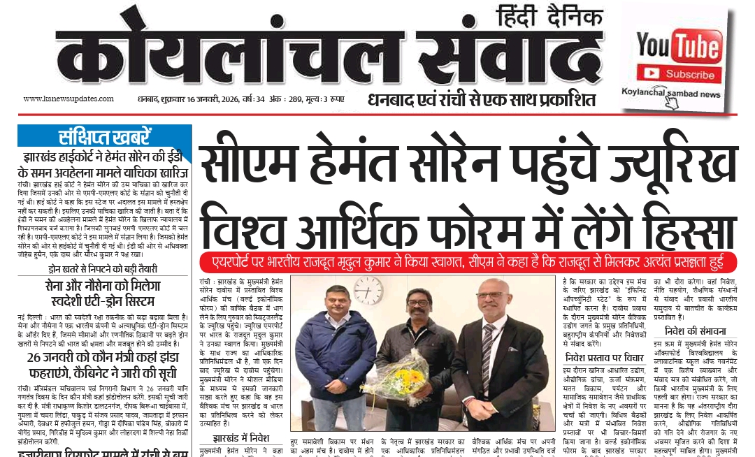 Koylanchal Samvad e-paper | 16th Jan | Dhanbad