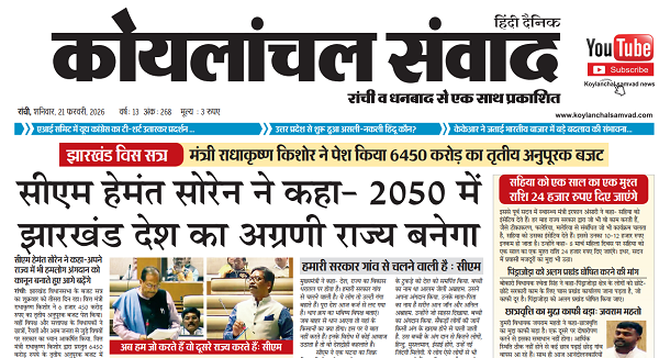 Home»E-Papper»Koylanchal Samvad e-paper | 21st Feb | Ranchi