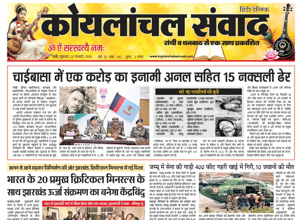 Home»E-Papper»Koylanchal Samvad e-paper | 23rd Jan | Ranchi