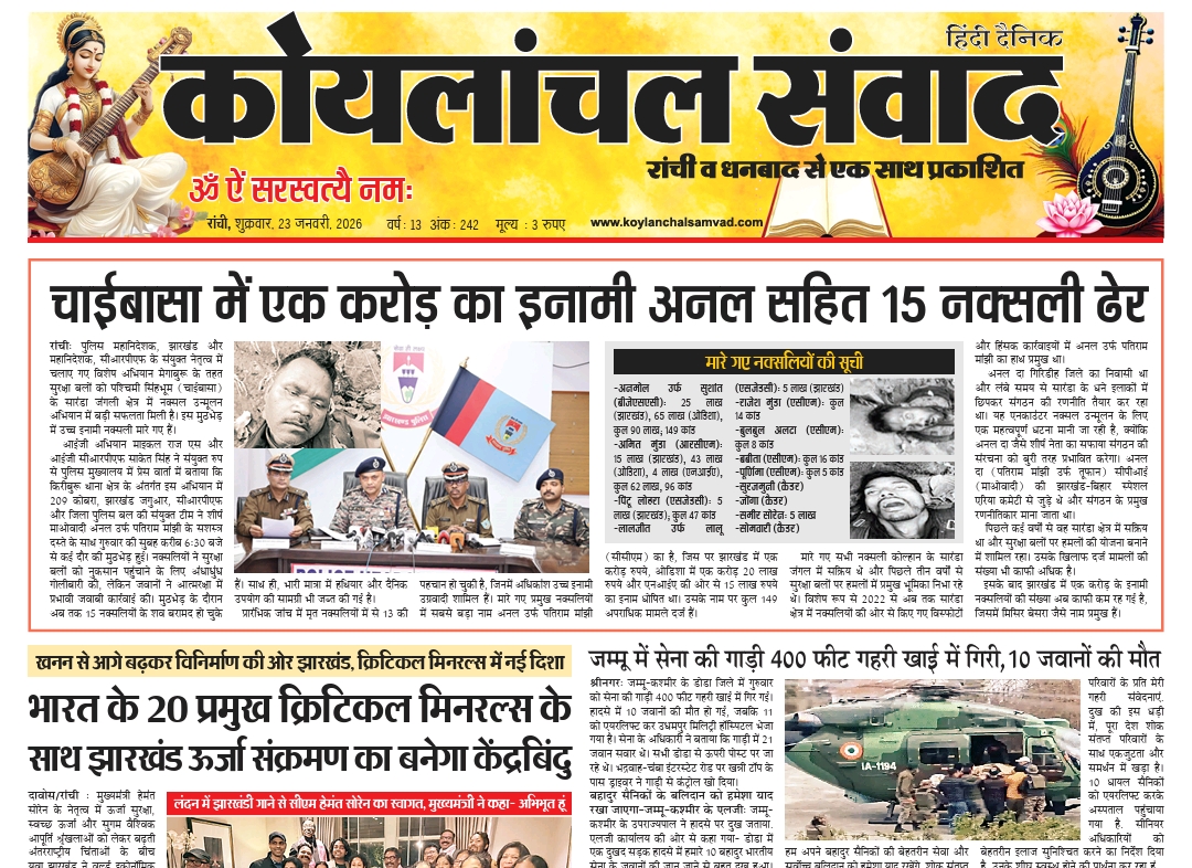 Koylanchal Samvad e-paper | 23rd Jan | Ranchi