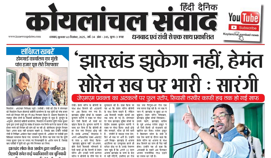 Koylanchal Samvad e-paper | 3rd Dec | Dhanbad