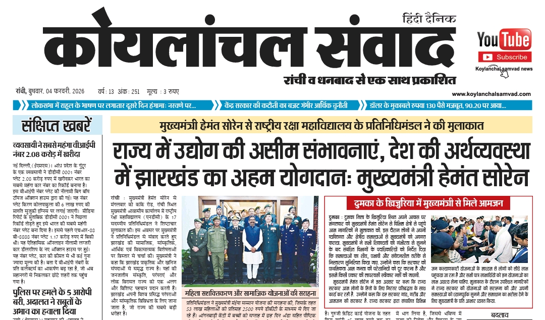 Koylanchal Samvad e-paper | 4th Feb | Ranchi