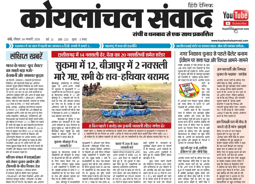 Koylanchal Samvad e-paper | 4th Jan | Ranchi