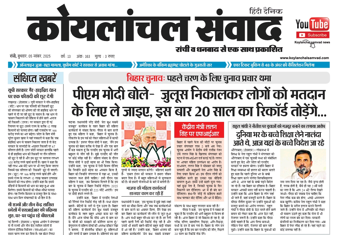 Koylanchal Samvad e-paper | 5th Nov | Ranchi
