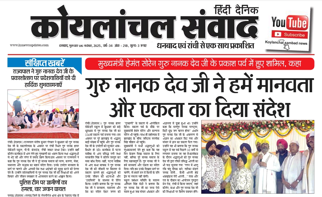 Koylanchal Samvad e-paper | 6th Nov | Dhanbad