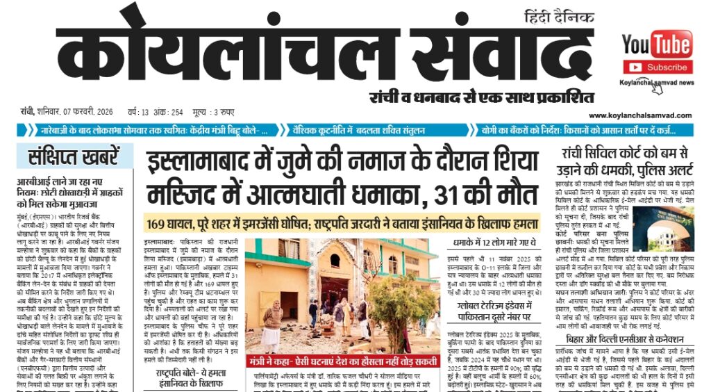 Home»E-Papper»Koylanchal Samvad e-paper | 7th Feb | Ranchi