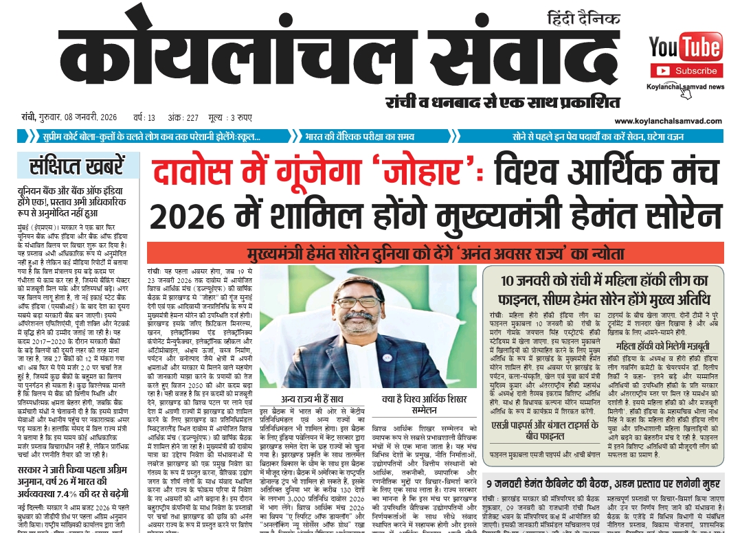 Koylanchal Samvad e-paper | 8th Jan | Ranchi
