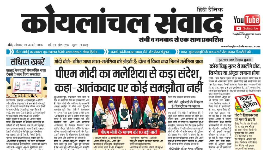 Home»E-Papper»Koylanchal Samvad e-paper | 9th Feb | Ranchi