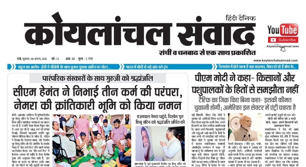 Home»झारखण्ड»KOYLANCHAL SAMVAD RANCHI PDF 08-08-2025