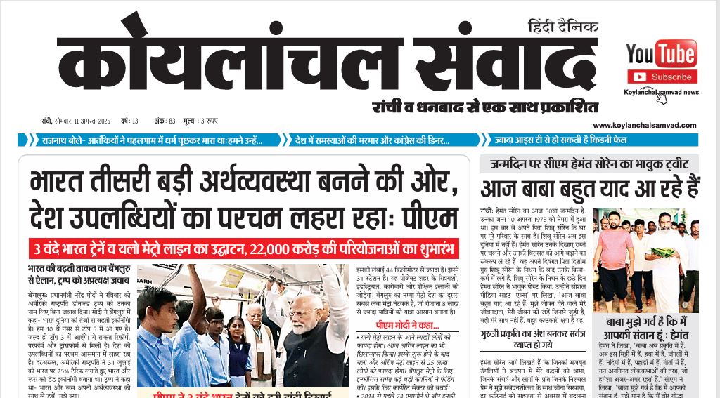 Share WhatsApp Facebook Twitter Copy Link Pinterest Email [pdf-embedder url=”https://koylanchalsamvad.in/wp-content/uploads/2025/08/KOYLANCHAL-SAMVAD-RANCHI-11-AUG.pdf” title=”KOYLANCHAL SAMVAD RANCHI 11 AUG”]
