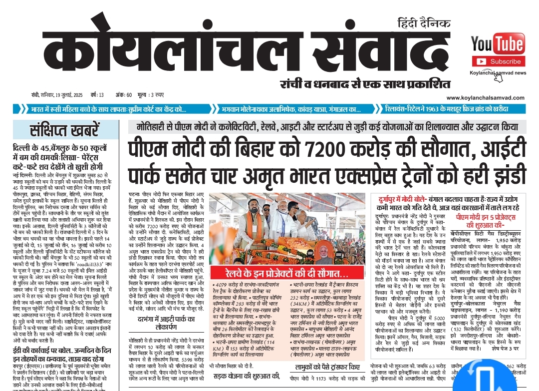 Share WhatsApp Facebook Twitter Copy Link Pinterest Email [pdf-embedder url=”https://koylanchalsamvad.in/wp-content/uploads/2025/07/KOYLANCHAL-SAMVAD-RANCHI-19.07.2025-JUlay-2025.pdf” title=”KOYLANCHAL SAMVAD RANCHI 19.07.2025 JUlay 2025″]