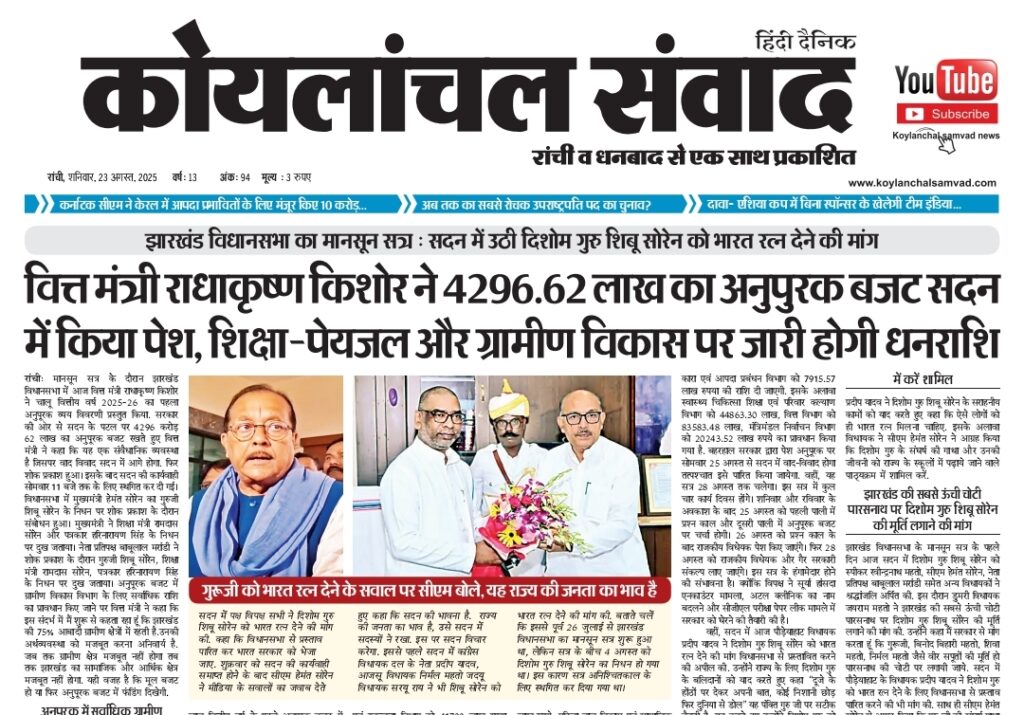 Home»E-Papper»KOYLANCHAL SAMVAD RANCHI PDF 23-08-2025