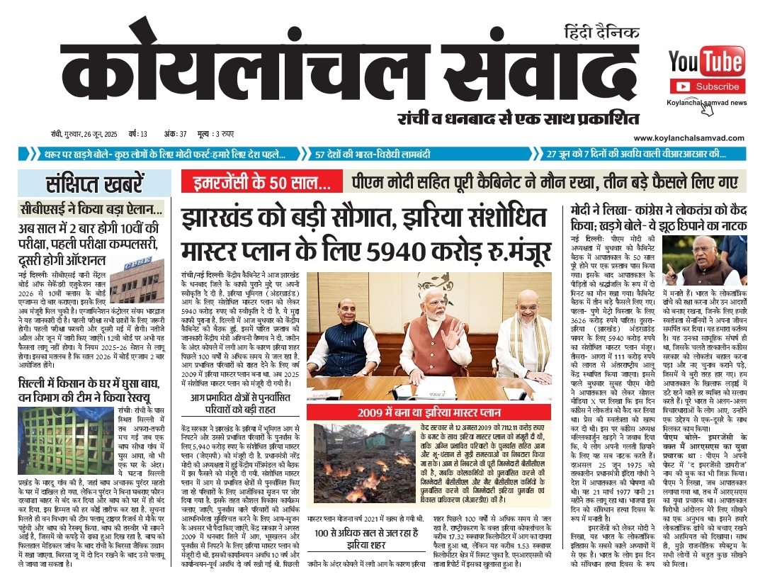 Home»E-Papper»KOYLANCHAL SAMVAD RANCHI PDF 26-06-2025