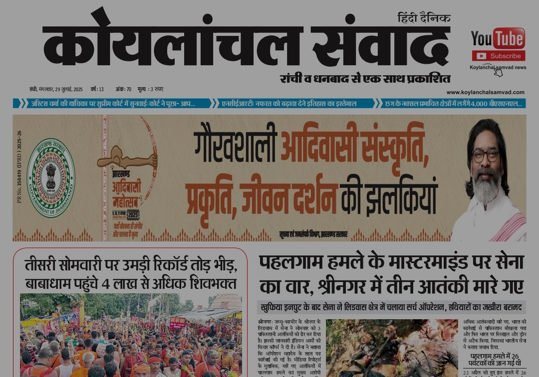 Share WhatsApp Facebook Twitter Copy Link Pinterest Email [pdf-embedder url=”https://koylanchalsamvad.in/wp-content/uploads/2025/07/KOYLANCHAL-SAMVAD-RANCHI-29-JULY.pdf” title=”KOYLANCHAL SAMVAD RANCHI 29 JULY”]
