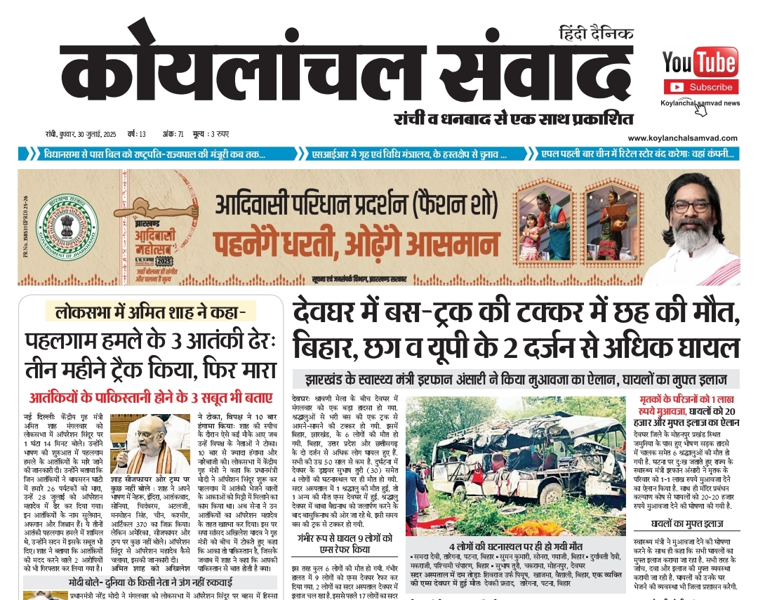 Share WhatsApp Facebook Twitter Copy Link Pinterest Email [pdf-embedder url=”https://koylanchalsamvad.in/wp-content/uploads/2025/07/KOYLANCHAL-SAMVAD-RANCHI-30-JULY.pdf” title=”KOYLANCHAL SAMVAD RANCHI 30 JULY”]
