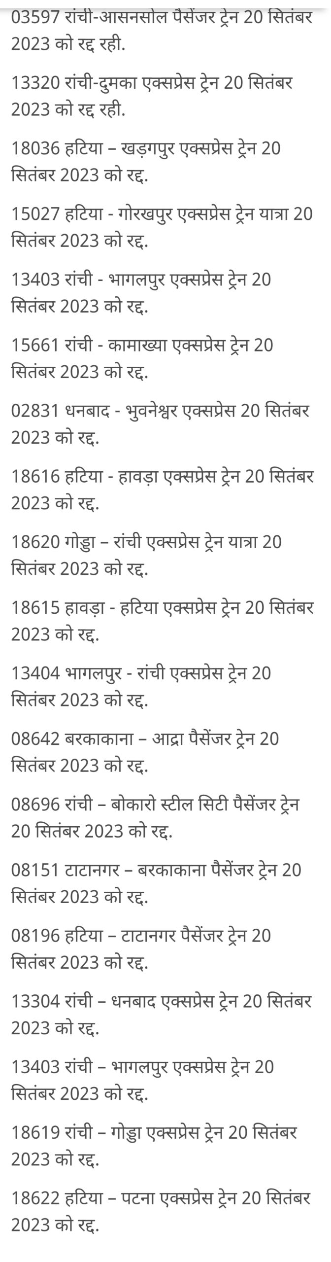 ये ट्रेन रहेंगी रद्द