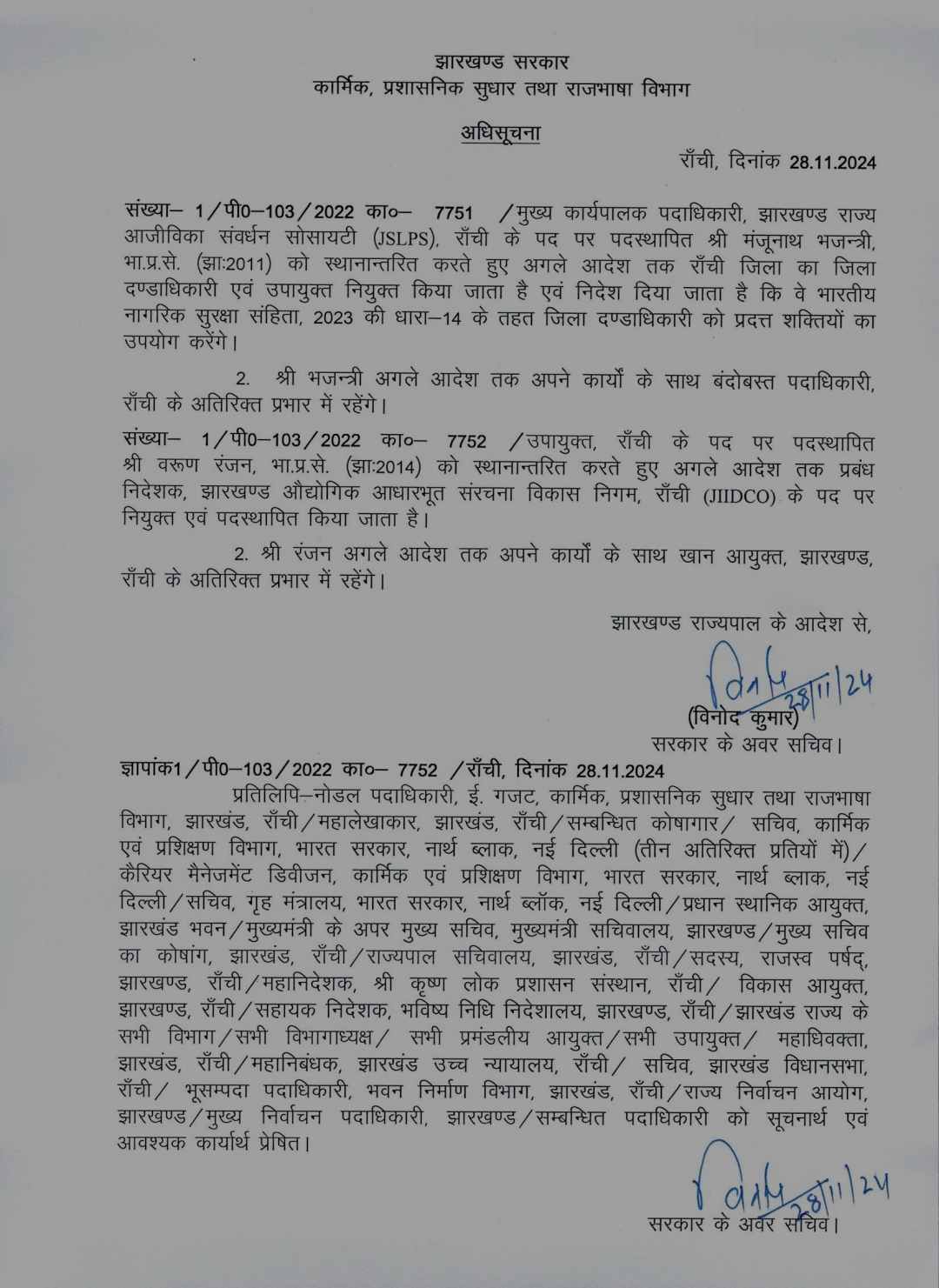 Share WhatsApp Facebook Twitter Copy Link Pinterest Email हेमंत सोरेन के सीएम बनते की बदले गए रांची के डीसी, मंजूनाथ भजयंत्री होंगे राजधानी के आयुक्त