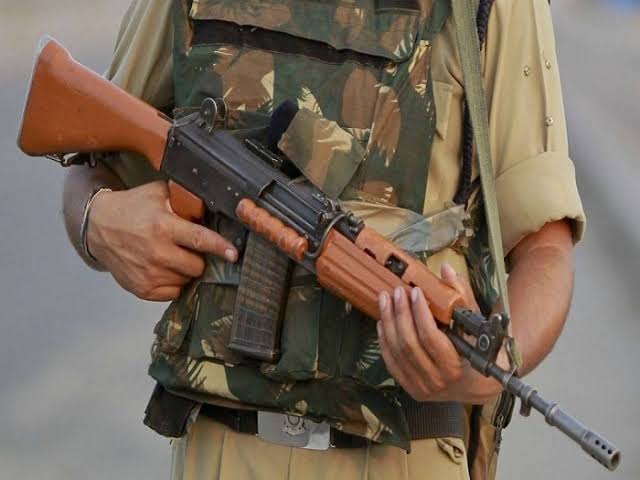 समस्तीपुर जिला बल के सिपाही उत्तम कुमार राउत का एसएलआर रायफल जिसमे 20 राउंड गोली भी थी