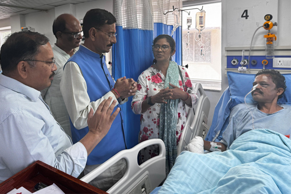 केंद्रीय रक्षा राज्य मंत्री संजय सेठ ने आज हॉस्पिटल पहुंचकर बिमल लकड़ा का हाल जाना साथ ही डॉक्टर से उनके स्वस्थ्य को लेकर बातचीत भी की, इसके साथ ही केंद्रीय मंत्री संजय सेठ ने बिमल लकड़ा की पत्नी कांति बिमल लकड़ा से भी बातचीत की और उन्हें ढाढस बंधाया. केंद्रीय मंत्री संजय सेठ के साथ बीजेपी नेता संजीव विजयवर्गीय ने भी बिमल लकड़ा का हाल जाना.